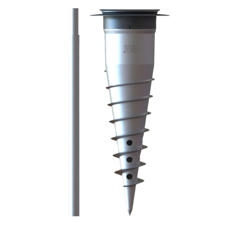 De metalen structuur, de fijne schroefdraad en de scherpe punt maken het gemakkelijk om in de grond te dringen, zelfs op zachte ondergrond.
